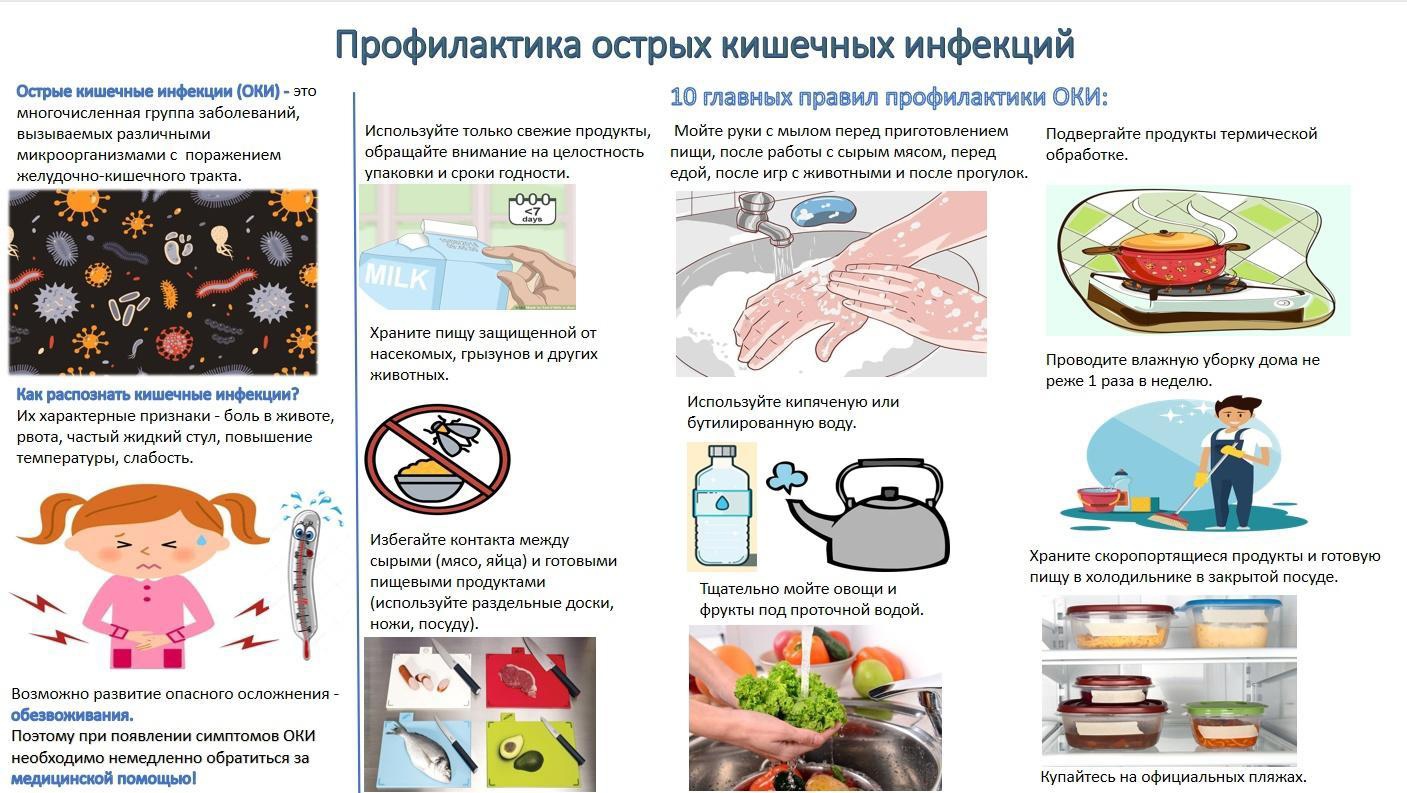 Острые кишечные инфекционные заболевания (ОКИ) являются самыми массовыми заболеваниями детей дошкольного и школьного возраста, особенно в летний период. Возбудителями кишечных инфекций могут быть: бактерии (сальмонеллез, дизентерия, холера), вирусы (ротавирус, норовирус и др), токсины (ботулизм).